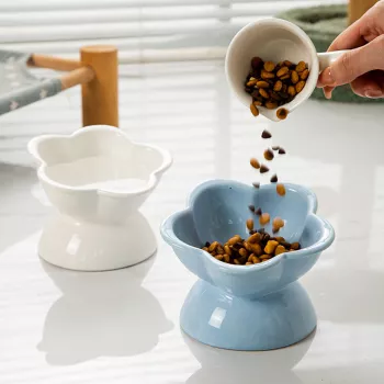 Ceramic Elevated Cat Bowl with Oblique Mouth and Anti-Slip Footed Base