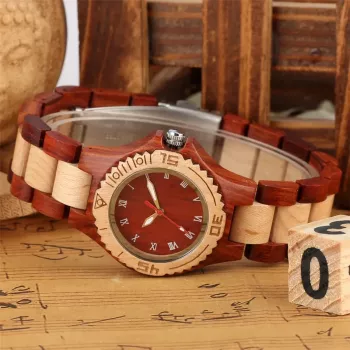 Elegant Wooden Women's Quartz Bangle Watch with Roman Numerals