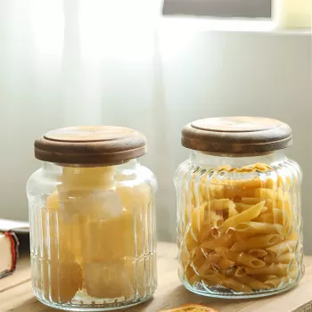 Retro Glass Storage Jar with Acacia Wood Lid – Eco-Friendly & Airtight